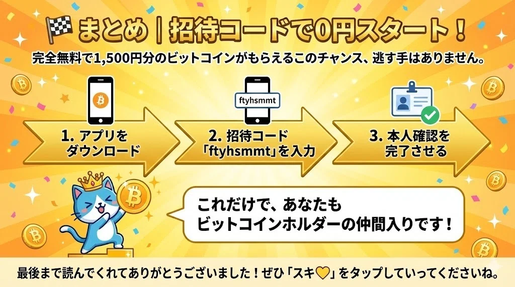 🎁 招待コード利用登録で、1500円分のBTCがもらえる!