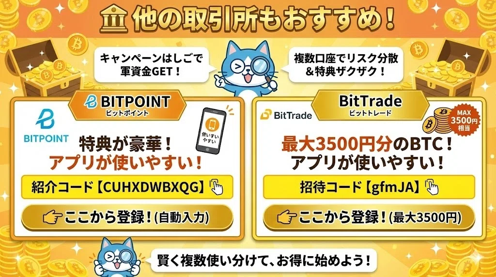🏦他の取引所もおすすめ!