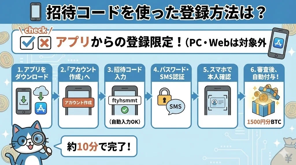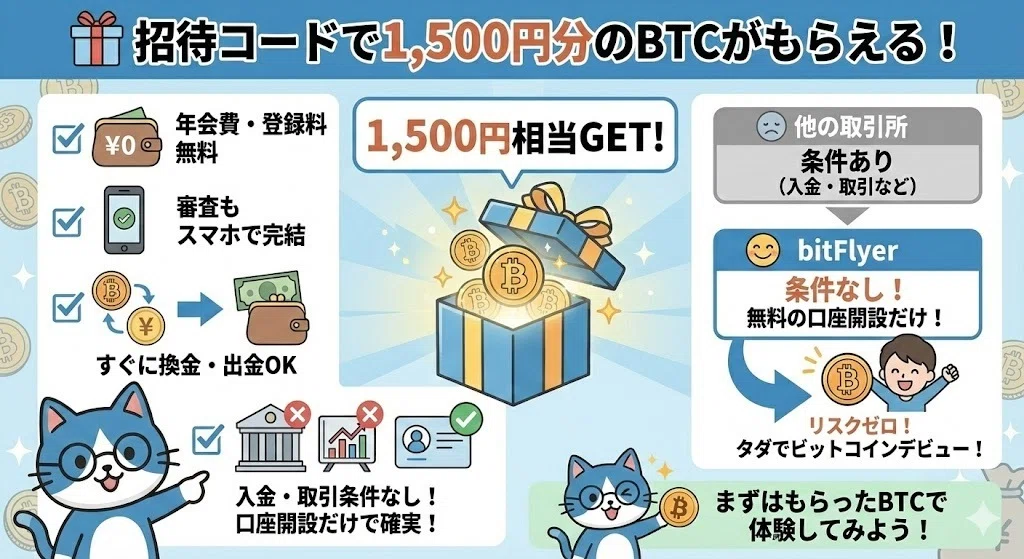 🎁 招待コード利用登録で、1500円分のBTCがもらえる!