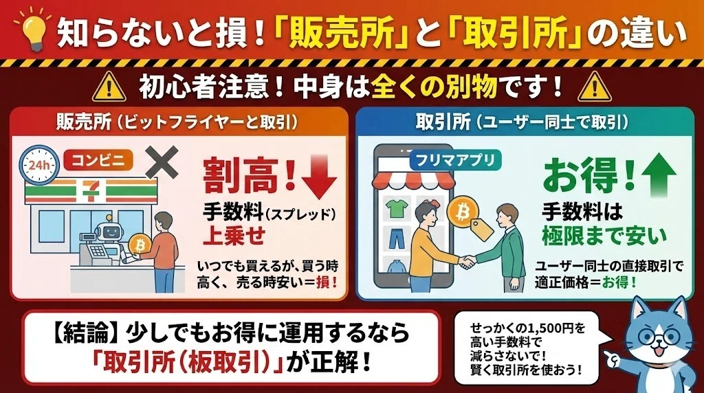 💡 販売所は割高になる!取引所を使え!